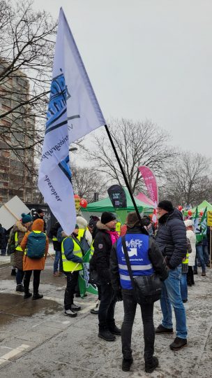 Jens Kühn, Tarifbeauftragter der VRFF-Betriebsgruppe der Semperoper, und seine Kolleginnen und Kollegen sind wütend. Denn auch in der zweiten Verhandlungsrunde hat die Arbeitgeberseite, die Tarifgemeinschaft deutscher Länder (TdL), kein verhandlungsfähiges Angebot vorgelegt, sind sich Jens Kühn und Nannette Seidler vom Sächsischen Beamtenbund (SBB) einig. Stattdessen, so Seidler, habe die TdL in den vergangenen zwei Verhandlungsrunden vor allem auf Ablehnung gesetzt. „Wenn die Arbeitgebenden meinen, streiken zu müssen, machen wir das konsequent auch.“ So legen VRFF und SBB heute gemeinsam die Arbeit nieder.